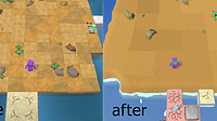 I'm experimenting with some visual decorations. In this case, the love generated by the people's reunion allows flowers to grow in the islands. I added a little wind to animate the flowers. Perhaps th...